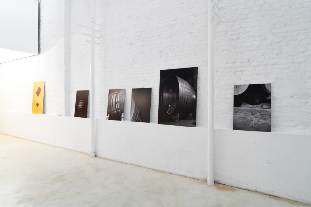 Le scelte compiute da ciascuno dei 5 autori hanno portato alla ripresa di forme ravvicinate che tendono all’astrazione rappresentativa. Le fotografie di Giacomo Alberico, dal titolo “Se nell’attesa”, mostrano le botti custodite nelle cantine Zenato, fotografate in modo da valorizzarne la componente estetica e le relazioni fisiche che si instaurano tra questi grandi e nobili contenitori. Per Cecilia Del Gatto, nella serie “Méscita”, il bicchiere e le differenti gradazioni cromatiche del vino divengono protagoniste, creando un parallelismo con i colori della tradizione artistica italiana. Alessandra Draghi porta alla nostra attenzione un oggetto del mestiere, l’alzavino, detto anche “Ladro”, accostato in un set fotografico a elementi naturali prelevati sul territorio. “Le cose sensibili” di Cesare Lopopolo sono invece gli strumenti meccanici, presenza imponente e caratterizzante il paesaggio dell’azienda vitivinicola. Per finire, Anna Vezzosi con la serie “Punti di origine” ci riporta alla tradizione: la terra, una delle prime bottiglie di Lugana del 1973, un cerchio bianco a indicare le radici della vite autoctona.