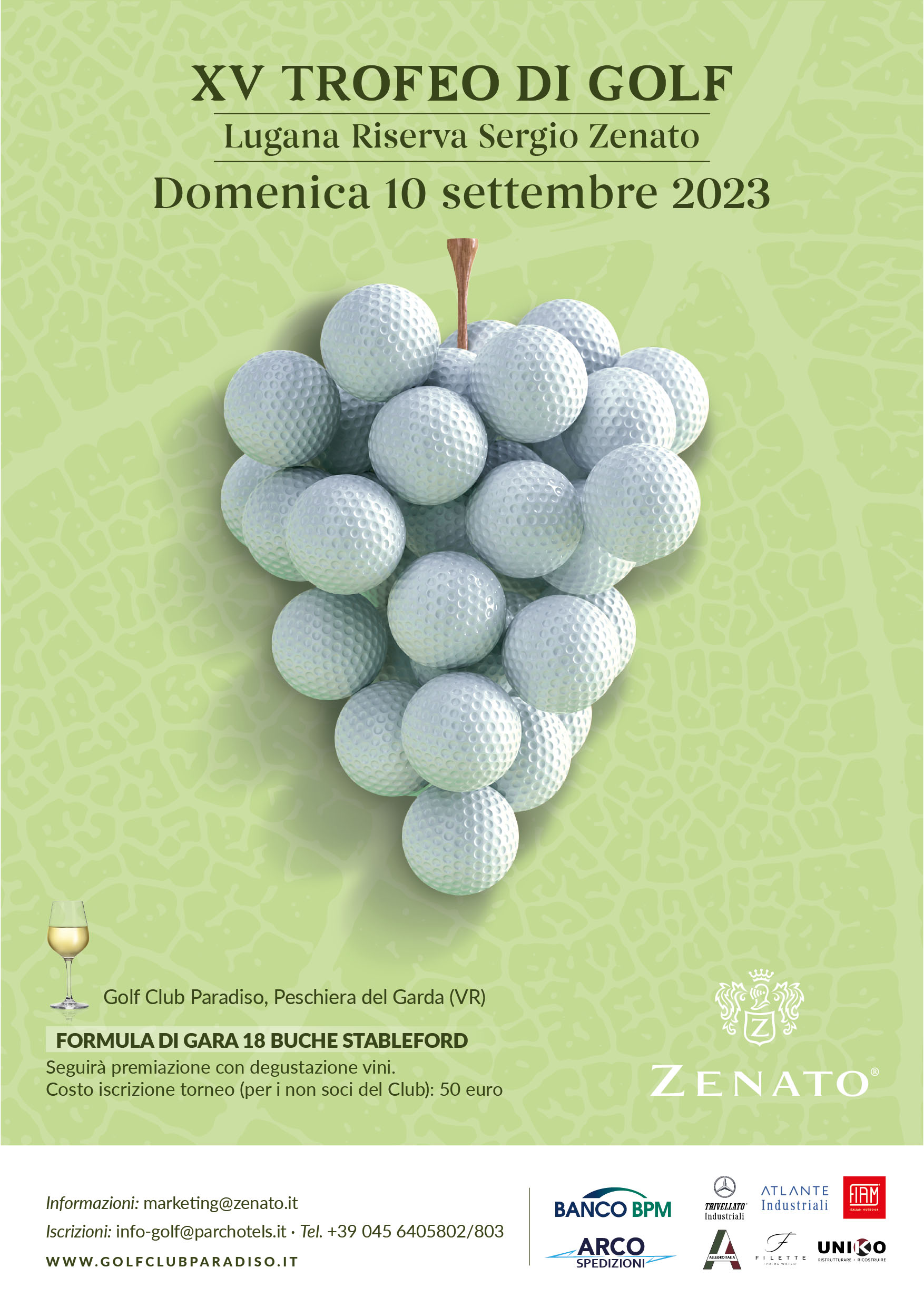 Per iscrizioni: Golf Club info-golf@parchotels.it – tel. 045 6405802-803 | marketing@zenato.it – tel. 045.7550300